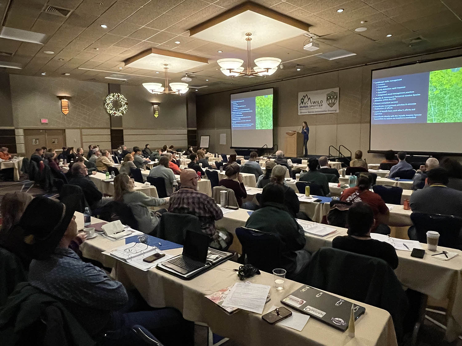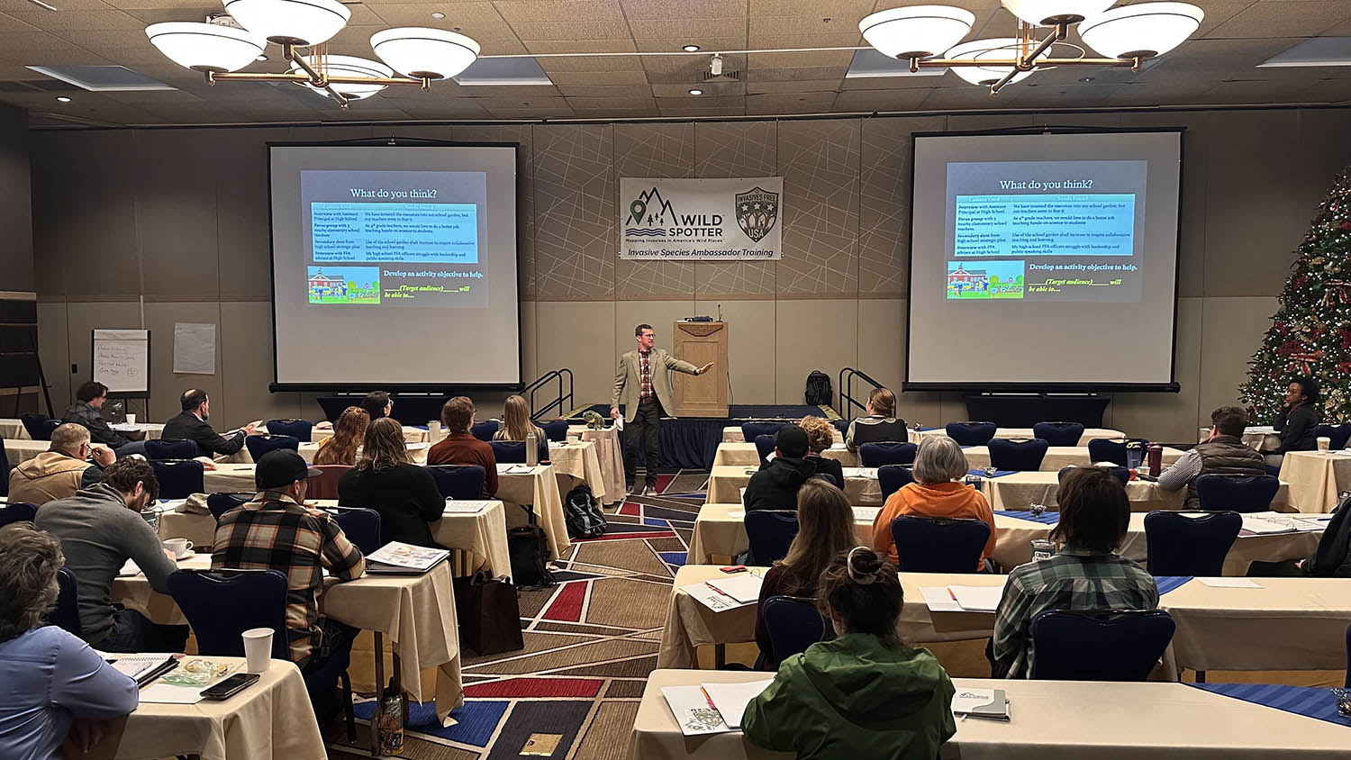 Fifty-nine students completed the inaugural Wild Spotter Invasive Species Ambassador Training, held December 5 – 7, 2023, as part of the nationwide Invasives Free USA campaign, and are the first class of certified Invasive Species Ambassadors. The training was held in Coeur d’Alene, Idaho and brought together a diverse array of people from the United States, the United Kingdom, Australia, Canada, and New Zealand to share information within the entire natural resources management field. The training was hosted and coordinated by the University of Georgia Center for Invasive Species and Ecosystem Health, Invasive Plant Control, Inc. (IPC), and the USDA Forest Service.